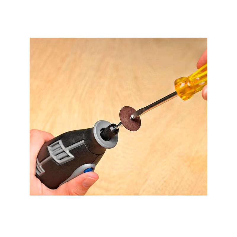 Держатель 402 используется для отрезных дисков и полировальных кругов Dremel: 409, 411, 412, 413, 420, 423, 425, 426, 456, 511, 512, 540 и 541. Для фиксации используется винт с прямым шлицом и хвостовик 3,2 мм.