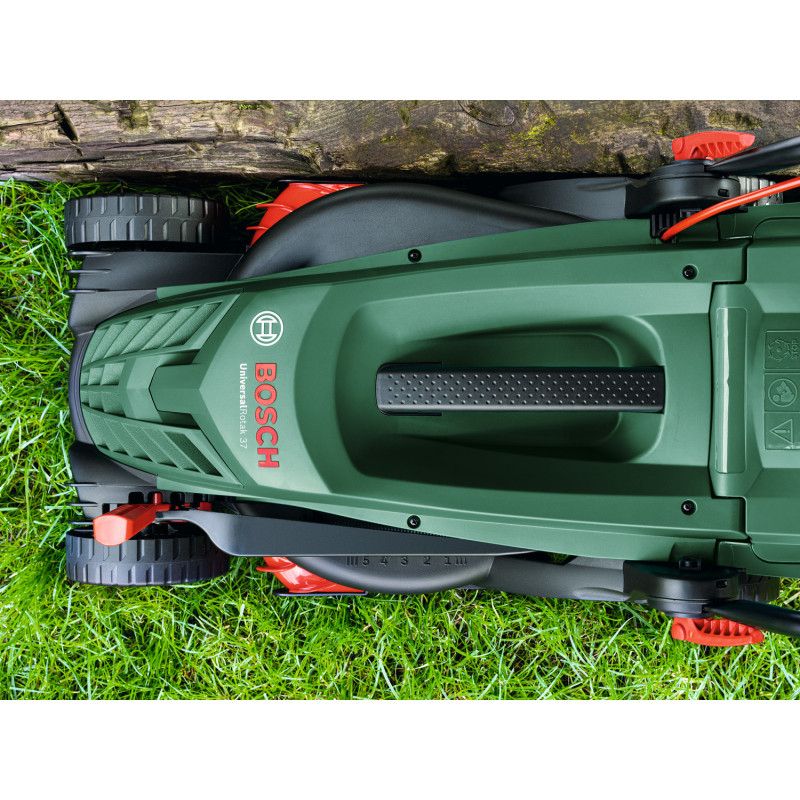 Роторная газонокосилка для стрижки газонов, оптимально подойдет для площади 5-7 соток. Подстригает вплотную к стене. Рукоятки Ergoflex для комфортного управления и маневренности, складываются для удобного хранения. Ручка на корпусе обеспечивает удобную переноску. Мощность 1400 Вт, ширина кошения 37 см.