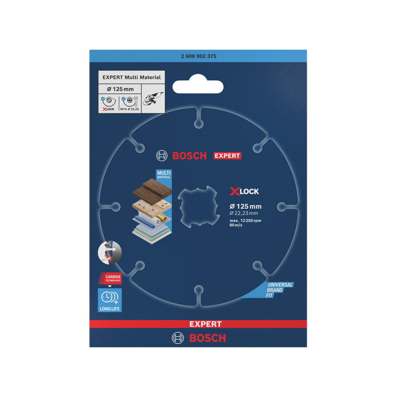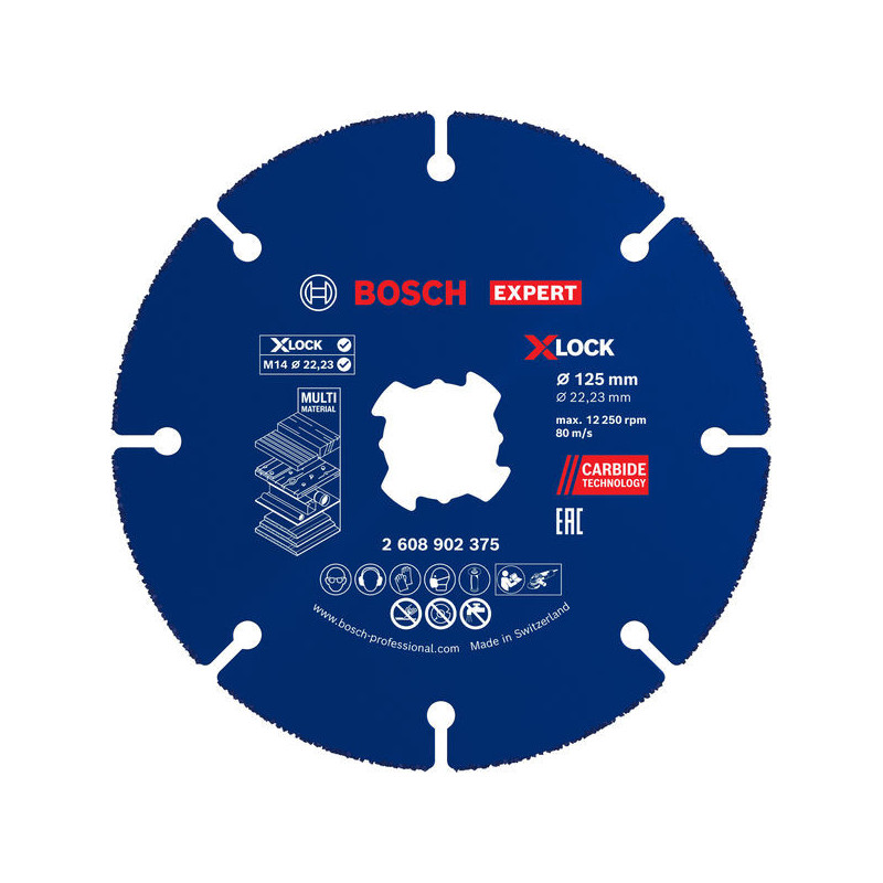 Твердосплавный диск Bosch EXPERT Multi Material Carbide Cutting, 125 мм – для резки твердой древесины, древесины с гвоздями, гипсокартонных плит, пластика. Усовершенствованная стальная основа поддерживает постоянную скорость и глубину резки. Сверхпрочный лазерный крепеж карбидной крошки к стальной основе. Подходит как для стандартного крепления так и крепления X-Lock.