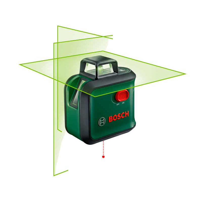 Лазерный нивелир с проекцией горизонтальной линии на 360 °, 2 вертикальных линий и нижней точки отвеса. Зеленый луч лазера в 4 раза ярче красного. Штатив TT 150 (1.5 м) в комплекте для комфортной работы и точного нивелирования.