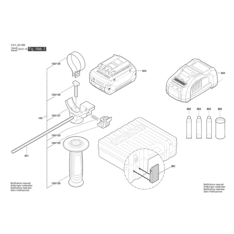 Комплектация | 2 Акб. GBA 18V 4,0Ah (1607A350M0); Зарядное устройство для GAL 18V-40 (2607226251); Дополнительная ручка (160202508X); Чемодан 1619P17129 |