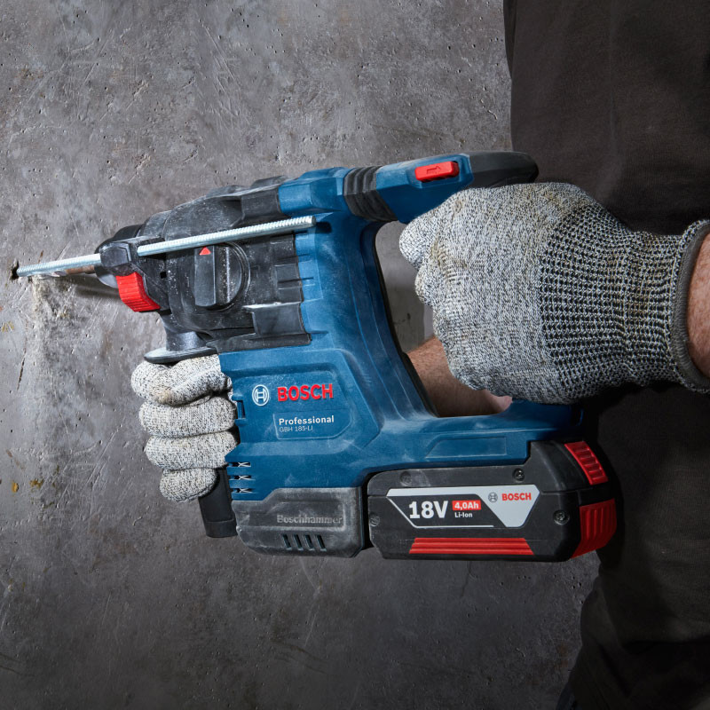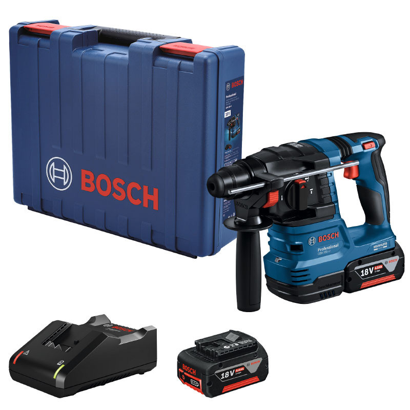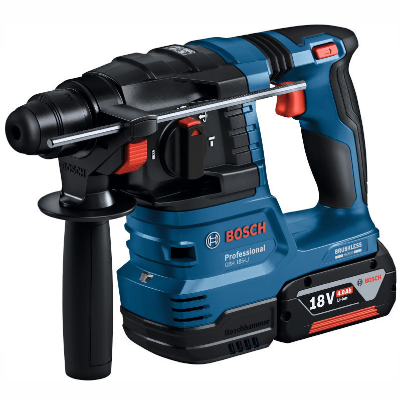 Перфоратор GBH 185-Li в комплектации с 2 аккумуляторами GBA 18V 4.0Ah, зарядным устройством GAL 18V-40, в чемодане. Напряжение аккумулятора – 18 вольт; Энергия удара – 1,9 Дж; Диаметр буров по бетону – 4-20 мм; Вес – 2,3 кг. Мощный механизм, безщеточный двигатель для надежного и долгого срока использования в профессиональных целях.