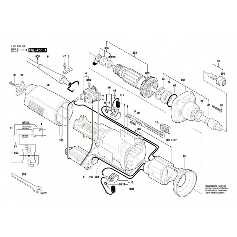 Комплектация | Гаечный ключ 19 мм (3607950024); Цанговый зажим 6 мм) (2608570137) |