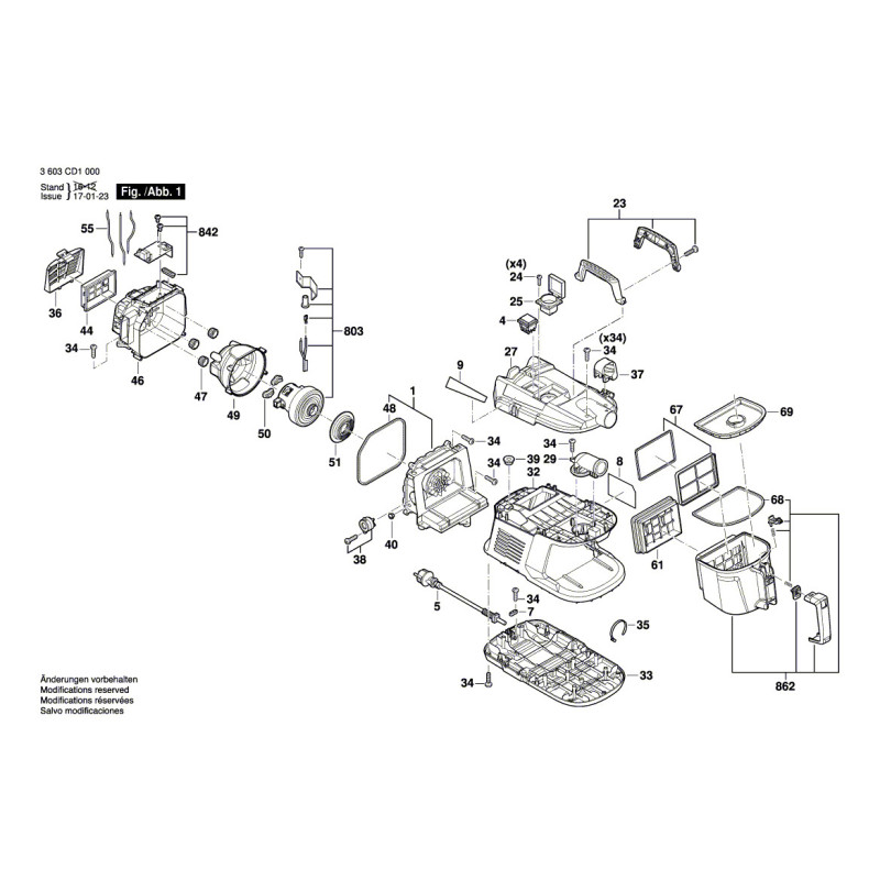 | Комплектация | Шланг 2,2 м, Ø 35 мм 2609256F29; Узкая насадка 2609256F26; Насадка напольная 2609256F25; Бумажный пакет фильтр 2609256F34; Плоский складчатый фильтр 2609256F36; Переходник 2609256F28; Фильтр предварительной очистки 2609256F37. |