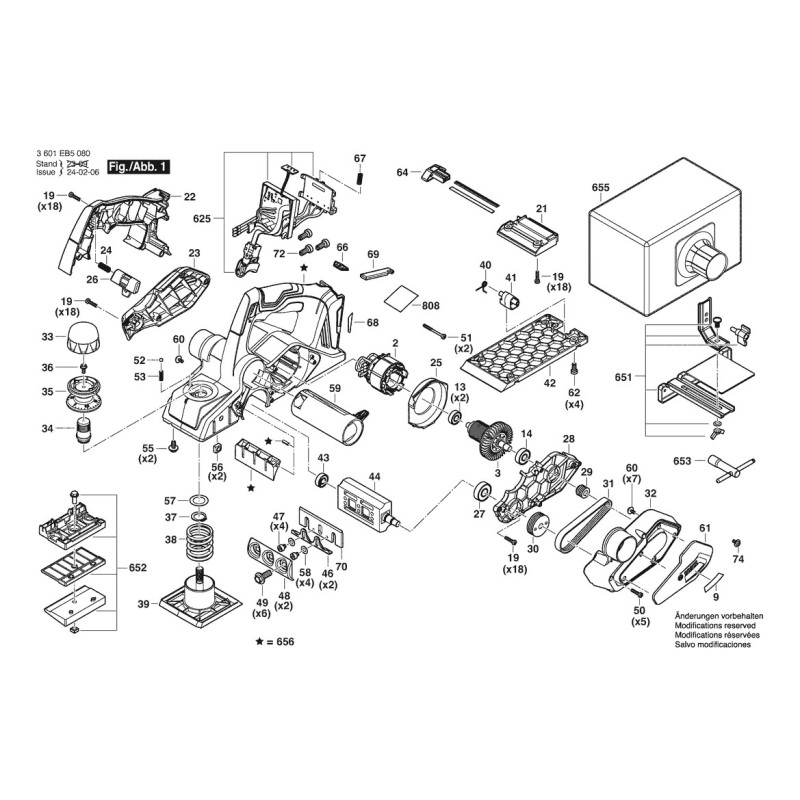 | Комплектация | Картонная коробка; Монтажный гайкокрут 1619PC1531; Мешок для пыли 1619PC1532; Направляющий кронштейн 1619PB4338 |
