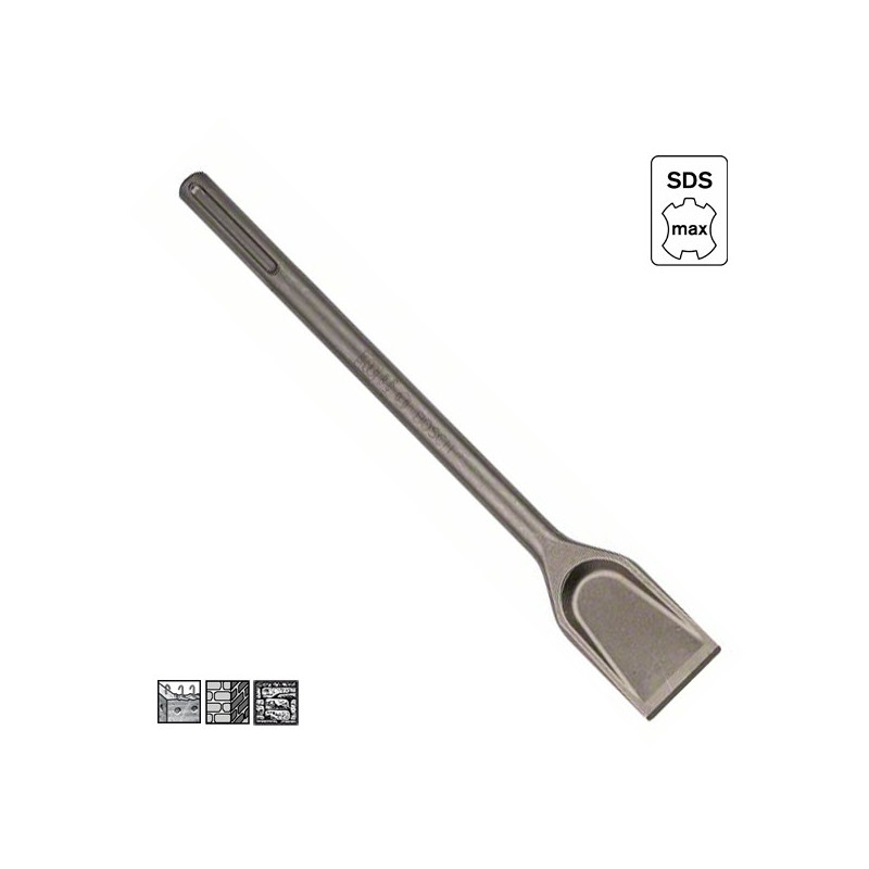 Лопаточное Bosch SDS-max зубило, самозатачивающееся, изготовлено по технологии Long Life с увеличенной на 30 % производительностью выемки. Рабочая форма позволяет эффективно выполнять долбежные работы в бетонных и кирпичных конструкциях.