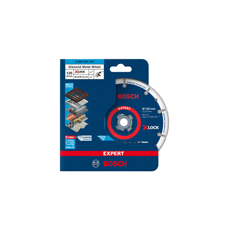 Диск Bosch EXPERT Diamond Metal Wheel X-LOCK, 125 мм - завдяки довговічній ріжучій кромці з технологією Diamond Technology, під час різання металу працює у 100 разів довше ніж стандартний абразивний відрізний круг. Сталева основа підтримує постійну швидкість і глибину різання. Працює з багатьма матеріалами.