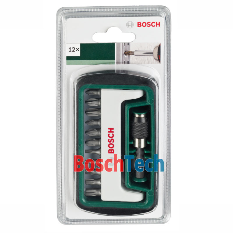 Високоякісні біти Bosch Standard, 12 шт + універсальний перехідник-тримач із блокуванням та вбудованим магнітом. Зручний кейс для носіння та зберігання. Набор містить по 1 шт біти типу: PH1, PH2, PH3, PZ1, PZ2, PZ3, T10, T15, T20, T25, T30 довжиною 25 мм.
