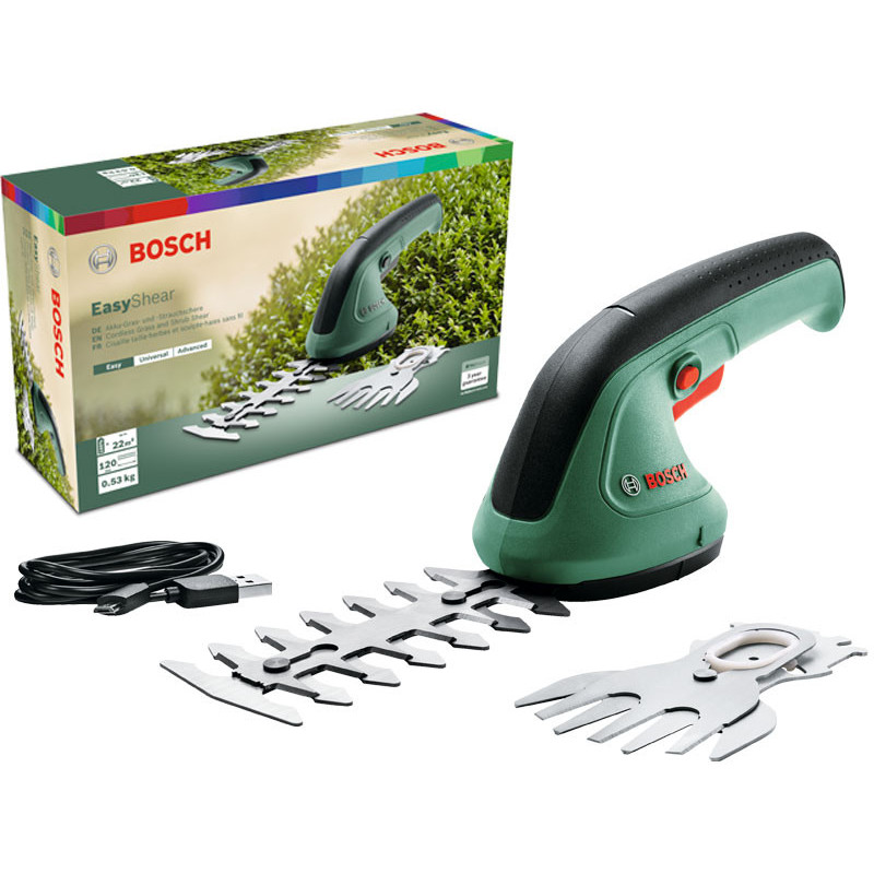 Комплектація | Кабель Micro-USB 1607000CG9; Ніж для кущів 120 мм F016800589; Ніж для трави 80 мм F016800588. |