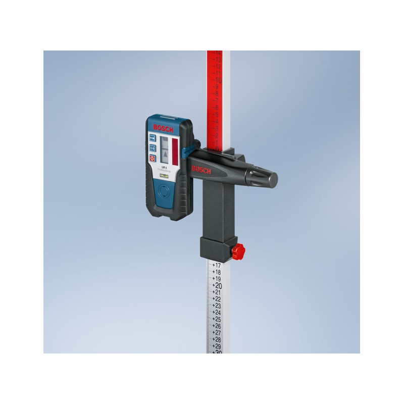 Двосекційна вимірювальна рейка Bosch GR 240 з робочою висотою 2,4 метра поєднує міцність алюмінієвого профілю та високу точність вимірювань. Завдяки телескопічній конструкції її довжина регулюється від 1,38 до 2,4 м. Чітка шкала мінімізує ризик помилок, а сумісність з лазерними приладами Bosch забезпечує точні вимірювання на великих відстанях без ручного регулювання.