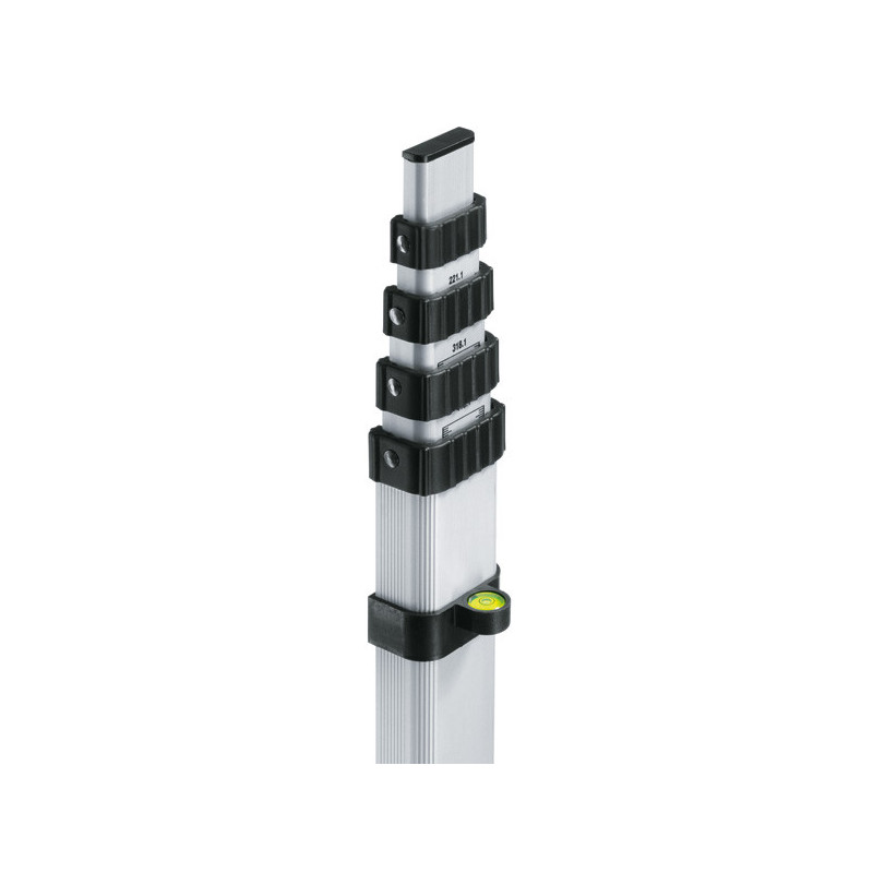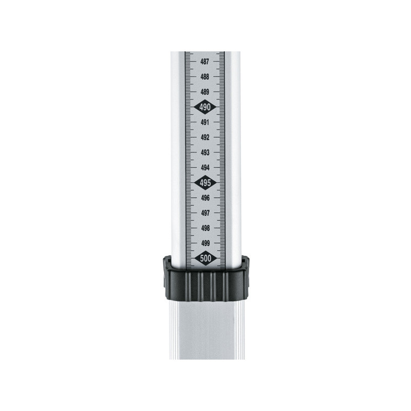 Професійна вимірювальна рейка Bosch GR 500 має п'ятисекційну алюмінієву конструкцію, що забезпечує робочу довжину до 5 метрів. Вона сумісна з ротаційними лазерами та оптичними нівелірами Bosch, гарантуючи високу точність вимірювань завдяки чіткій метричній шкалі. Міцний профіль стійкий до деформацій, а надійний механізм фіксації секцій робить її зручною для щоденної роботи на будмайданчику.